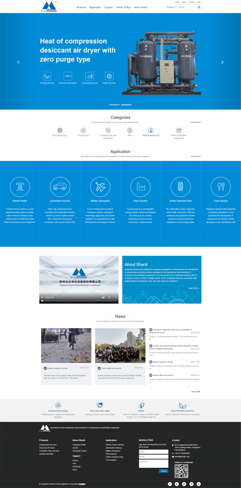 The new version of the website carries out a new design for the layout style, and adjusts the overall structure, functional modules, picture display, etc. The new website page is more beautiful and concise, the visualization effect is stronger, the content is richer, the structure is clearer, and strive to provide better browsing effect for the majority of customers and every friend who pays attention to Hangzhou Shanli purify equipment Co., Ltd.